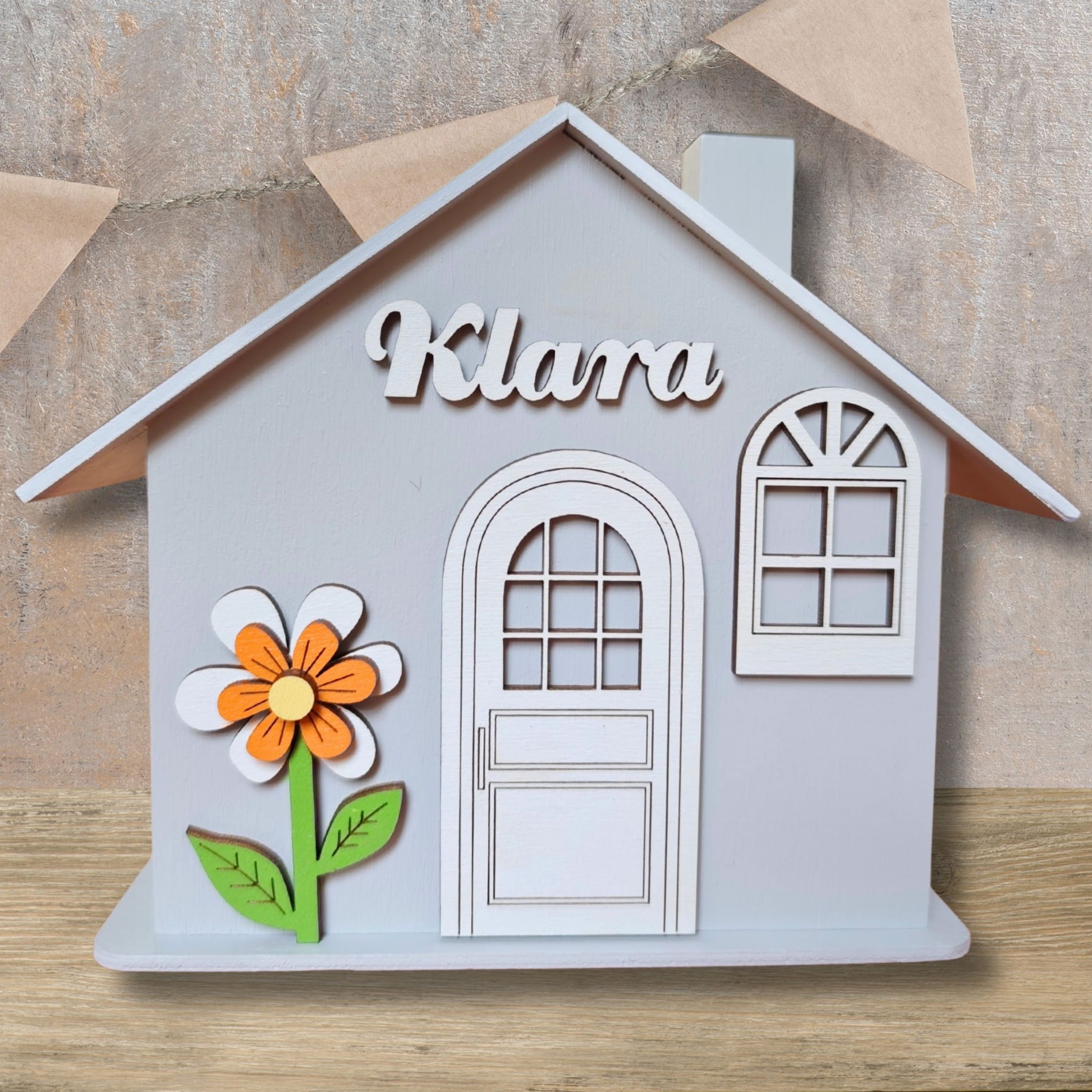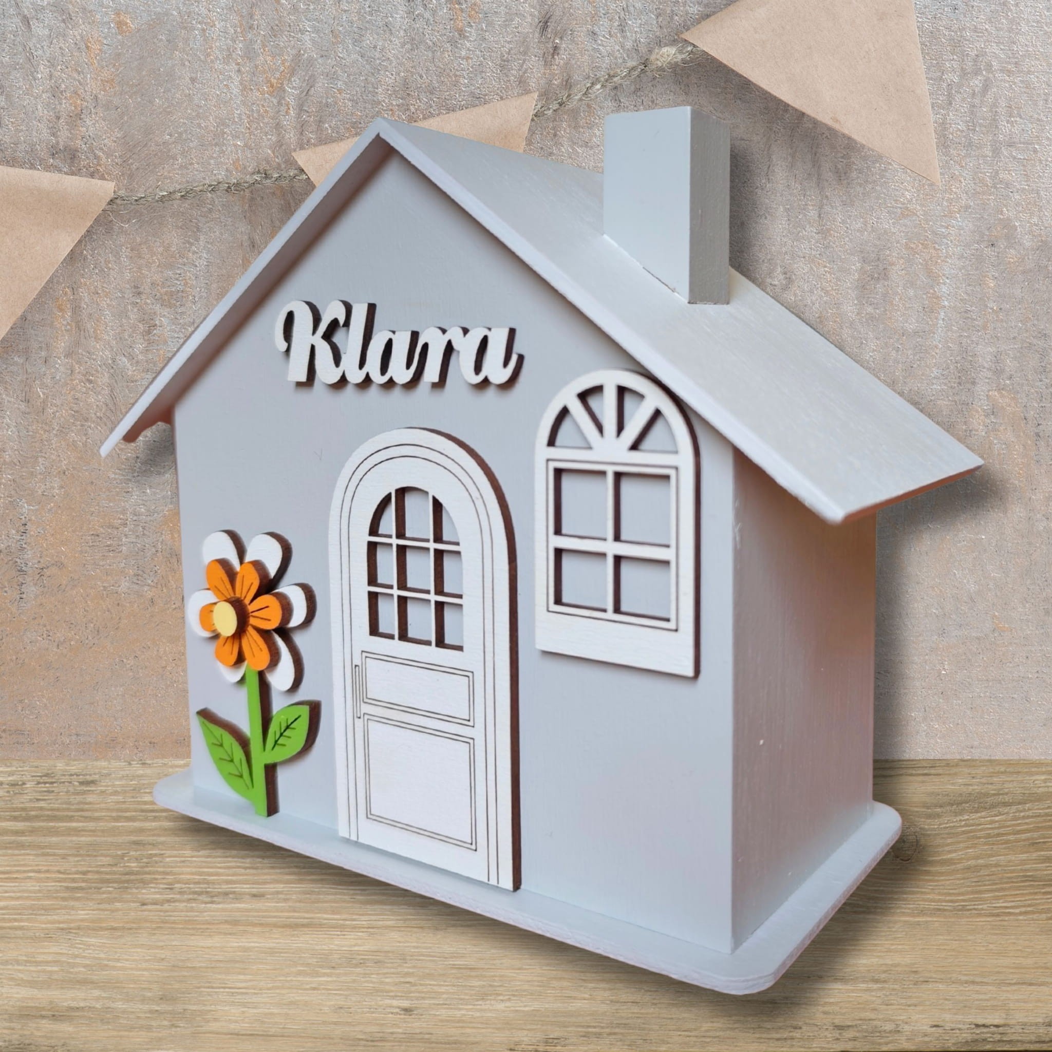 Duża drewniana skarbonka domek z imieniem